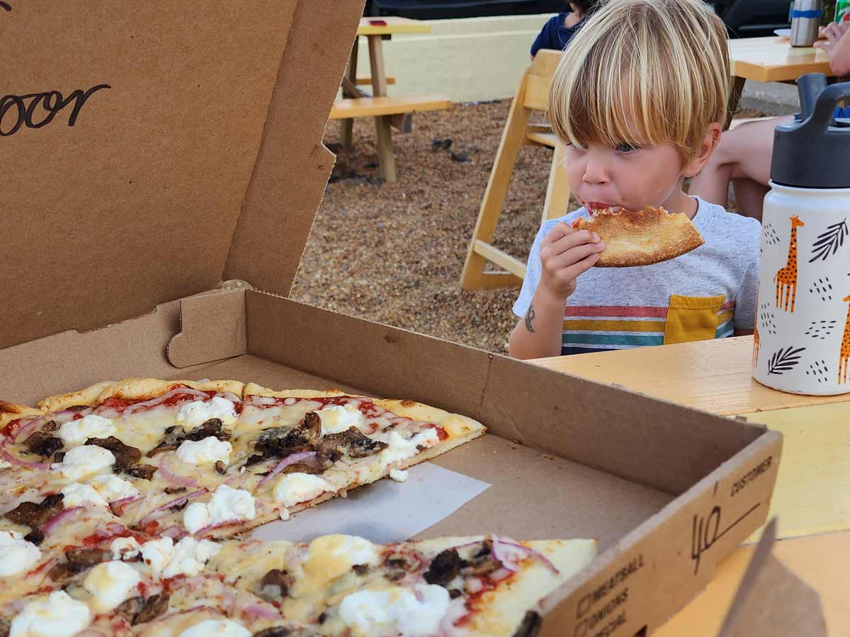 Eat pizza on the beach
