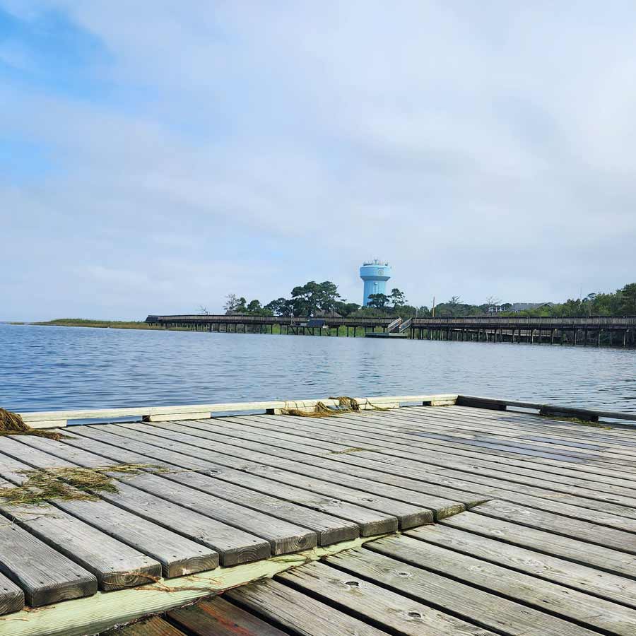 In the heart of Kill Devil Hills is a really beautiful arboretum and teaching garden. The paths wind through the woods and there are benches, picnic tables, and lots of native plants. This connects to the Aviation Park fitness trail, so you can access it either by parking at the Dare County Library, or at Aviation Park. All together, the connected paths are maybe ½ mile long, but they create a really nice, wooded nature walk. The best part is, they connect to the Turtle Pond, which is a large pond with a dock/overlook where you can feed turtles- and they come in droves! See if you can spot the resident mammoth snapping turtle. It’s best to bring chopped lettuce, celery, etc. to feed them; it’s posted that you shouldn’t feed them bread (it’s not healthy for them, and also causes algae blooms). They go crazy for it, and it’s super fun to watch.