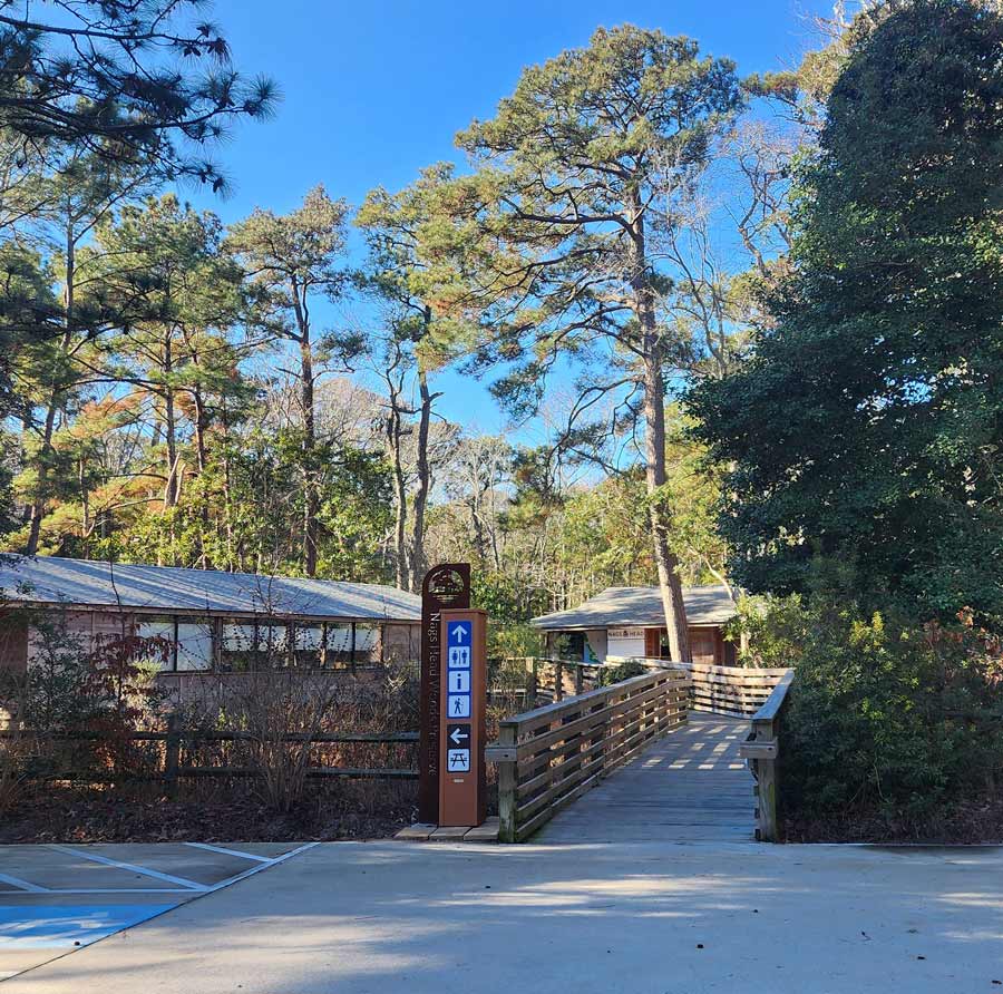 The Nags Head Woods nature preserve is located in Kill Devil Hills. There is a visitors center with info, and 5 different trails of varying lengths and terrain. There are a couple very short paths great for the youngest hikers, and some longer trails for those with a bit more stamina. There’s unique maritime forest scenery, ponds, hills, bridges, muskrats, and native flora.